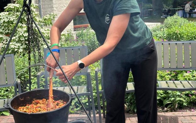 Tijdens deze kookdemonstraties op ons festival neemt Femkje je mee terug naar de essentie van koken: simpel, puur en met aandacht. Met een vuurschaal en een gietijzeren pan, hangend boven de vlammen, laat ze zien hoe koken op open vuur voelt als een vorm van luxe in onze snelle tijd.