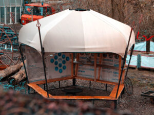 Buitenterrein te midden van wilde natuur zijn diverse ateliers, workshopruimtes en grote vuurplaatsen te vinden. lees verder